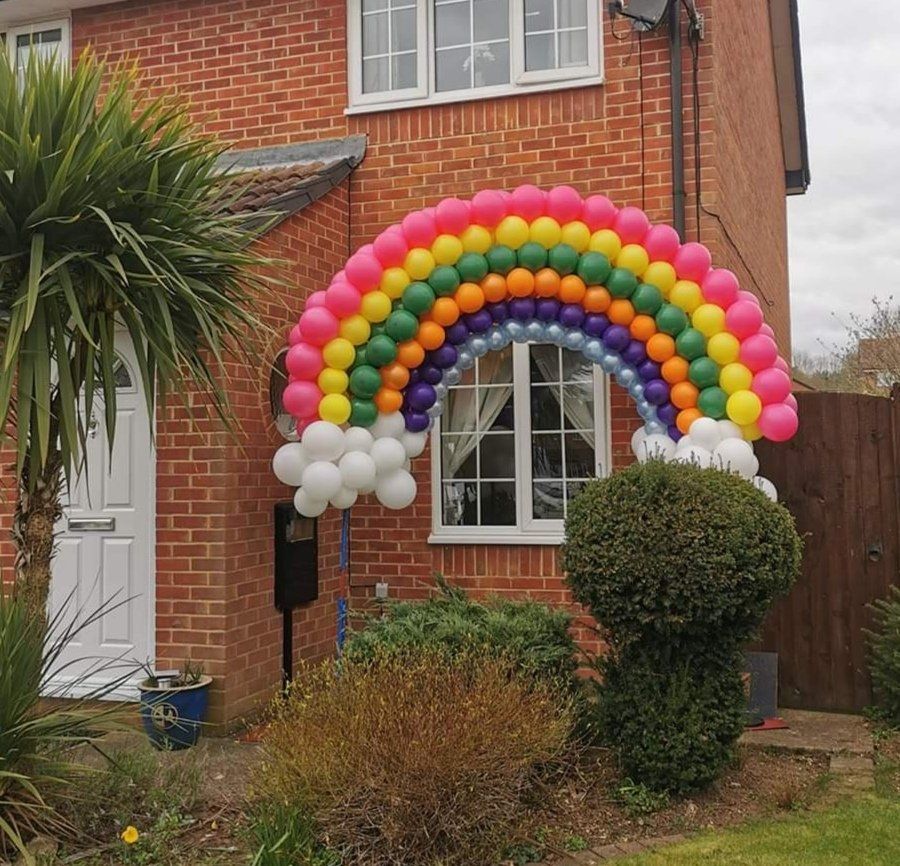 Organic style balloon arch seen here on display at Santander, Head Office, Milton Keynes